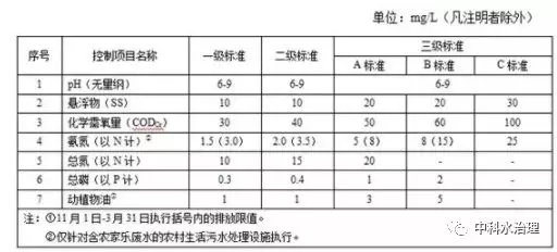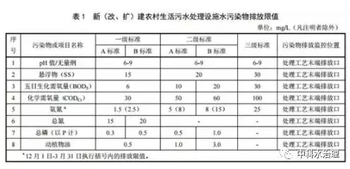 規(guī)模大于 2m3 /d(含)的新建農(nóng)村生活污水處理設(shè)施,水污染物排放限值按下表對應(yīng)的規(guī)定執(zhí)行。