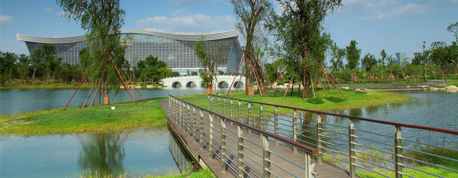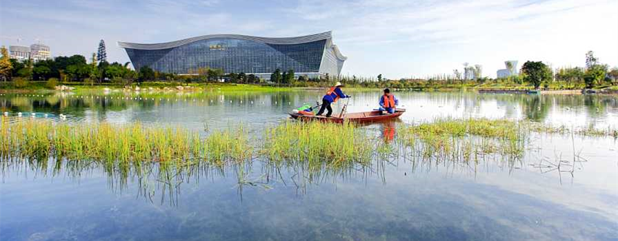 錦城湖3#、4#湖生態(tài)系統(tǒng)構(gòu)建工程自2013325日開工至5月底主要施工任務(wù)完成。水體透明度達(dá)到2米,部分區(qū)域清澈見底,從61日開始,工程進(jìn)入優(yōu)化調(diào)整階段。2014年4月通過(guò)竣工驗(yàn)收,錦城湖工程(3#、4#湖)清水型生態(tài)系統(tǒng)構(gòu)建完工后,水體清澈,水質(zhì)優(yōu)于《地表水環(huán)境質(zhì)量標(biāo)準(zhǔn)》GB3838-2002 Ⅳ類(TP<0.1mg/L,TN<0.5mg/L),水體生物多樣性高,沉水植物覆蓋度達(dá)到60%以上,有效抑制了水體富營(yíng)養(yǎng)化趨勢(shì),水體透明度達(dá)到2m,部分地區(qū)清澈見底,水體景觀性好。